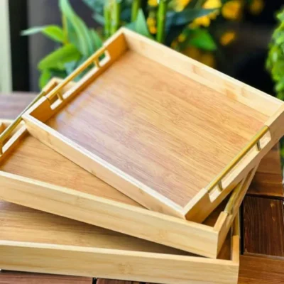 سینی سرو بامبو دسته طلایی مستطیلی وارداتی کد KİT-145