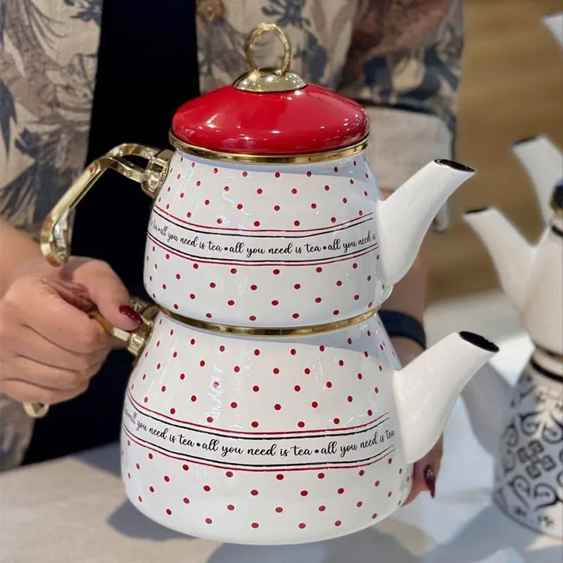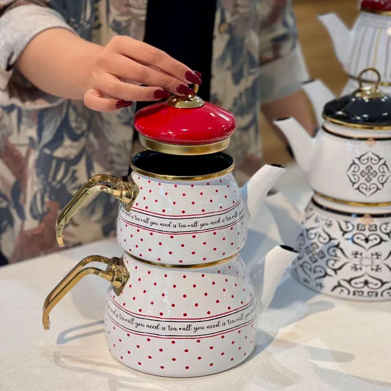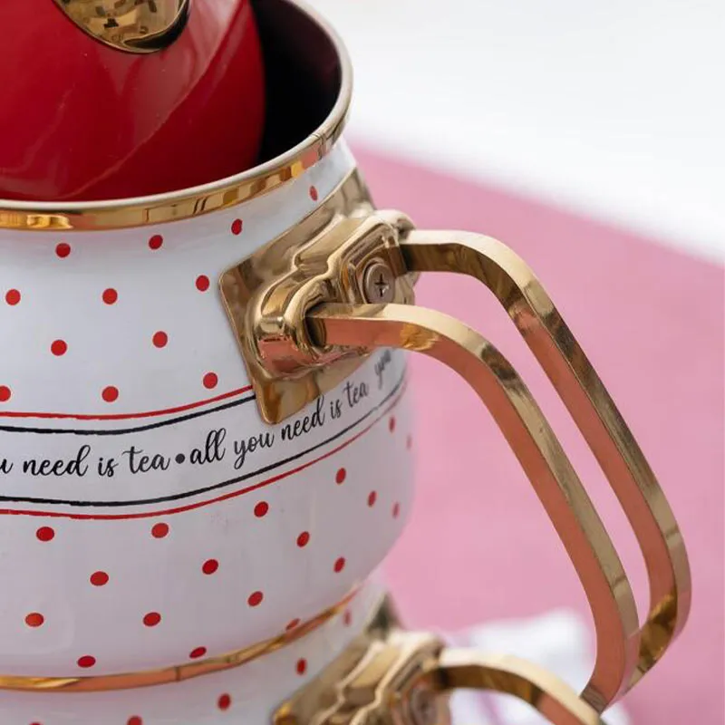 کتری قوری لعابی خال قرمز آجار مدل ACAR-XAP-06499