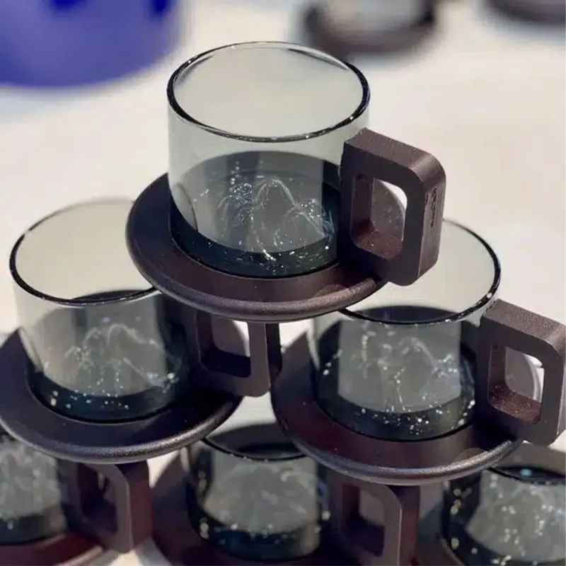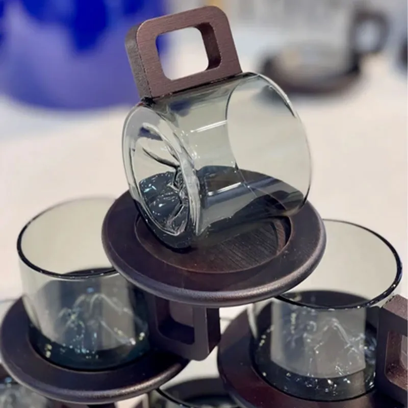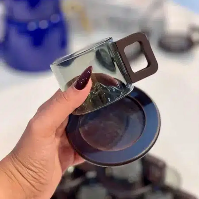 فنجان پیرکس دودی مدل کوه یخی زیره چوبی وارداتی