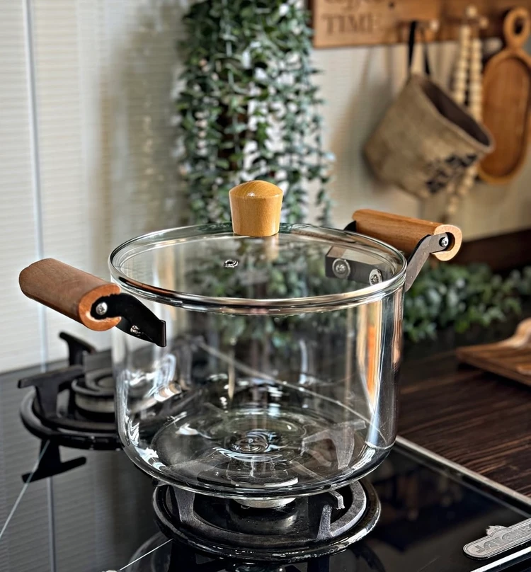قابلمه پیرکس ( شعله مستقیم ) 4.5 لیتری دسته چوبی وارداتی اورجینال