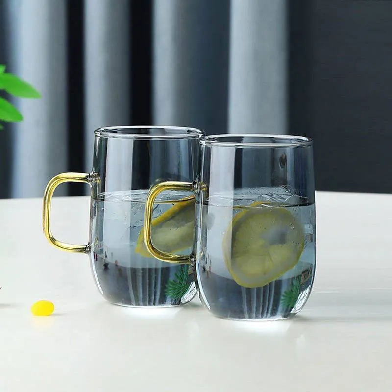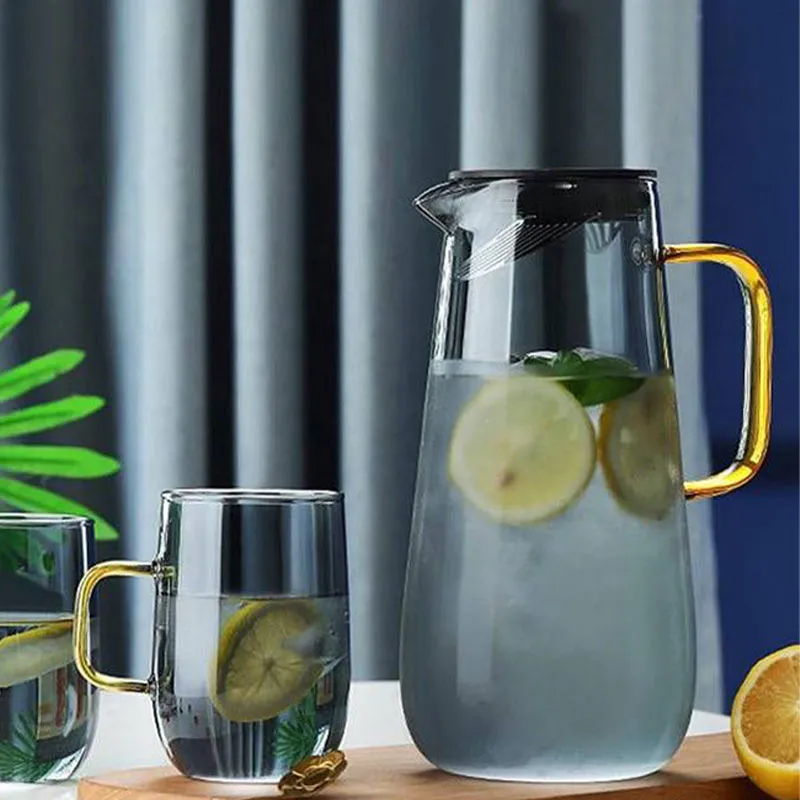 پارچ و لیوان پیرکس دودی دسته طلایی وارداتی